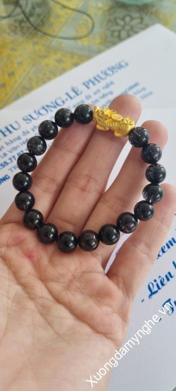 Hình ảnh vòng tay đá thạch anh tóc đen đã kiểm định đá quý tự nhiên được mix tỳ hưu vàng 9999